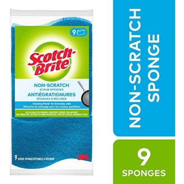 Scotch-Brite Scrub Sponge, 9 Pack, Non Scratch, Multipurpose Sponges for Dishes