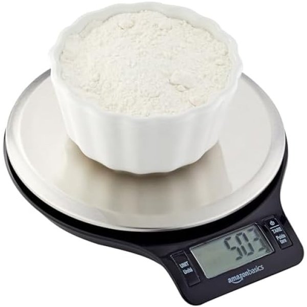 Amazon Basics Stainless Steel Digital Kitchen Scale with LCD Display, Batteries