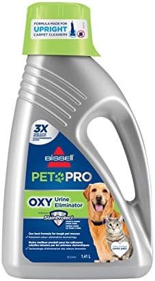 Handle pet stains with ease with bissell’s best formula for pet odors and stains. For use in the leading upright machines, Bissell professional pet urine eliminator + Oxy works on both carpet and upholstery to eliminate the trickiest pet stains and odors. This solution makes it easy to permanently remove stains and odors at the source while protecting against future stains on carpet with scotch gard Protector. Plus, it discourages your pets from urinating in the same spot again. Lightly scented to replace unpleasant odors with a fresh scent. Restore your surfaces to being clean and fresh with Bissell professional pet urine eliminator + Oxy.