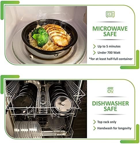 Freezer and microwave safe – These round food containers are incredibly stable and durable thanks to their robust design and construction. Both freezable and microwaveable they can to withstand temperatures from -20C to +110C (-4F – 230F) It is not recommended for use in a microwave with a wattage output of higher than 800 Watts. A microwave set higher than 800 watt may damage the container.