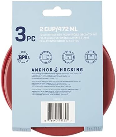 Anchor Hocking Classic Round Food Storage SnugFit Replacement Lids, Red, 2 Cup