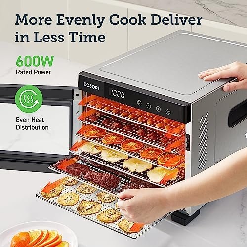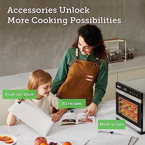 FULLY EQUIPPED: The dehydrator comes with 6 stainless steel trays (12 x 13 in), 1 mesh screen, 1 fruit roll sheet, 1 user manual, and a 50-recipe cookbook. Search for C267-2MS or C267-FR to find more