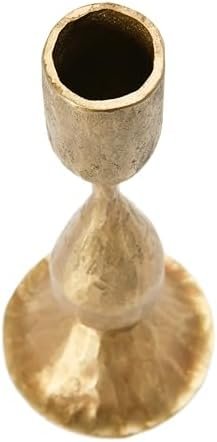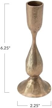 Constructed of metal with an antique brass finish and imperfect texture gives it a unique appearance