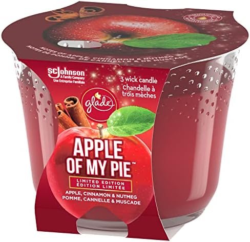 Awaken your senses with Glade Apple Cinnamon Jar Candle. Simply light the wick to quickly fill a room with fragrance infused with essential oils. Notes of crisp McIntosh apples, chilled cider, juicy berries and cinnamon meet to create the long-lasting scent of a cozy afternoon by the fireside.