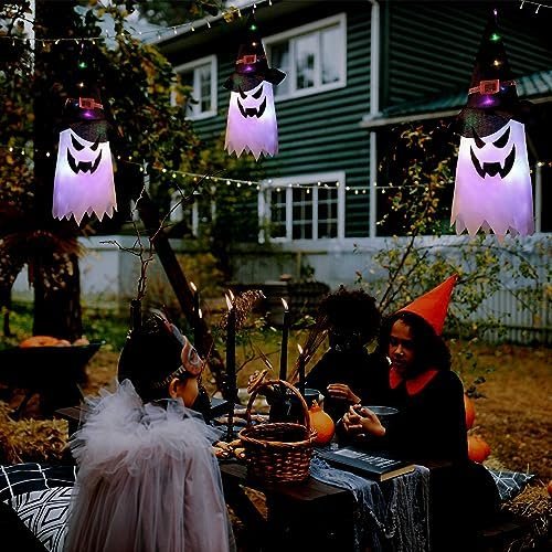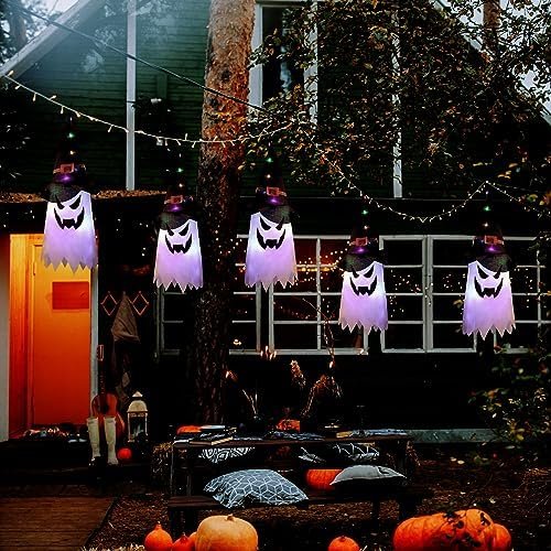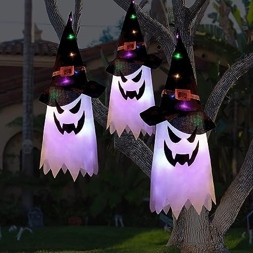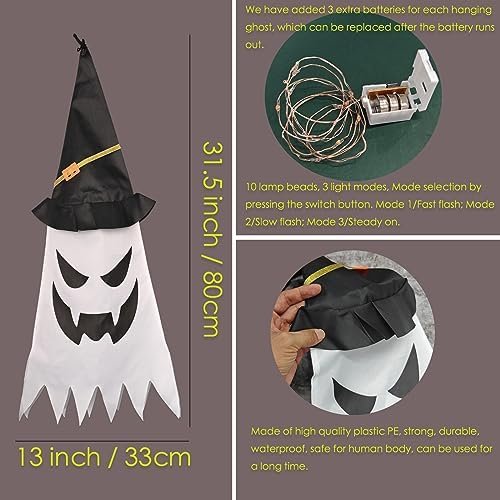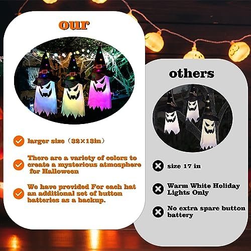 HANGING AT WILL:This halloween decor has grimace prints on both sides, each witch hat comes with a button, It can work anywhere you want the perfect combination of ghost and lights to light up your halloween and welcome your lovely neighbors.