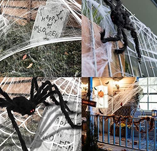 【VIVID & SCARY DESIGN 】 Huge Halloween spiders with red diamond-like eyes,the legs and full body are covered in black fur,look vivid and scary,the spider’s feet can bend and stretch freely,attach to the huge spider web well,makes the spider look more realistic,awesome and creepy.This whole set of spider web and spider to dress up your Halloween and add an eerie accent,create a horrible Halloween atmosphere,make your house the focal point of the Halloween street.