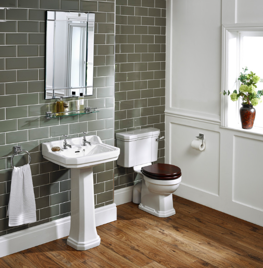 Complete with 55cm two taphole basin with overflow, integrated soap recesses and pedestal.