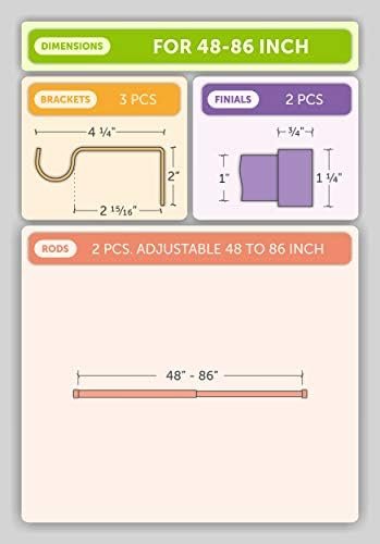 Ivilon drapery rod sets comes with telescoping rod, Metal finials, brackets, hardware and instructions.