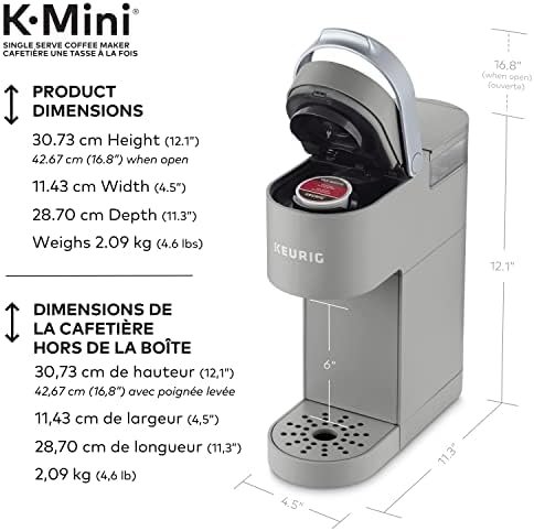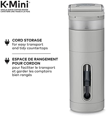 The new Keurig K-Mini single serve coffee maker features a new sleek design, and at less than 13 cm (5 in) wide is the perfect size for any space or occasion. The K-Mini brewer is effortlessly simple to use – just add fresh water to the reservoir, pop in your favourite K-Cup pod, press the brew button and enjoy fresh brewed, delicious coffee in minutes. Choose from hundreds of delicious K-Cup pod varieties to enjoy 177-355 ml (6-12 oz) of your favourite coffee, tea, cocoa, and iced beverages. With a single cup reservoir and cord storage, the K-Mini coffee maker is the portable coffee maker that makes anywhere perfect for great coffee. Our K-Cup pods are recyclable in select locations. They may not be recyclable in your area.