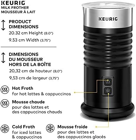 ONE-TOUCH BUTTON: Easy and simplified button controls; Simply select whether you’d like hot or cold foam; The Keurig Milk Frother will create perfect clouds of foam in under a minute