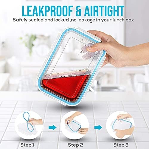 AIRTIGHT SEAL: An airtight lid keeps the food away from moisture that helps retain the freshness of food for a longer period. The innovative hinged locks with Silicon ring makes the glass container Airtight and liquid tight. Easy to flip open and shut quickly, the containers are leak-proof and perfect to carry food, veggies, and soups to work, school, gym, or hospital.