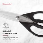 These all-purpose shears from KitchenAid are a valuable addition to your kitchen utensils set and ideal for a variety of tasks throughout the home, from slicing poultry and pizza to clipping coupons. The blade edges feature micro-serrations to provide a superior cutting experience. Durable and strong, these kitchen scissors are made from heavy-duty stainless steel that withstands daily use, with soft-grip handles that provide comfort and control while using. The shears come with a blade guard to protect blades when stored. Dishwasher safe; hand washing is recommended.