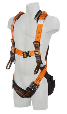 Sub Pelvic Strap integration along the line of Belay Loops, places the worker away from hardware in the event of a fall, significantly reducing the risk of injury from hardware hitting the worker