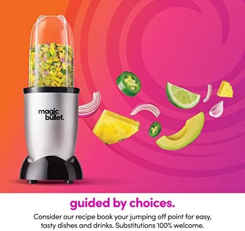 The As Seen on TV Magic Bullet 17-piece set is a handy countertop appliance that can chop, mix, blend, whip, grind, and more. It’s great for making refreshing smoothies, shakes, zesty salsas, or mouthwatering desserts. Includes: • 4 Party Mugs • 4 Comfort Lip Rings • 1 Tall Cup • 1 Short Cup • 1 High Torque Power Base • 1 Stainless Steel Flat Blade • 1 Stainless Steel Cross Blad • 2 Stay Fresh Re-usable Lid • 2 Shaker/Steamer Tops. The tall cup is 18 ounce,short cup is 12 ounce and the party mug is 18 ounce