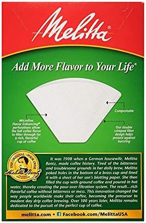 Made with chlorine free, oxygen cleansed paper pulp.;Fits all 10 to 12 cup coffeemaker that use a #4 cone filter.;Fits all coffeemakers that use a #4 size cone filter.;Melitta makes an annual donation to fund the replenishment of trees across the United States.