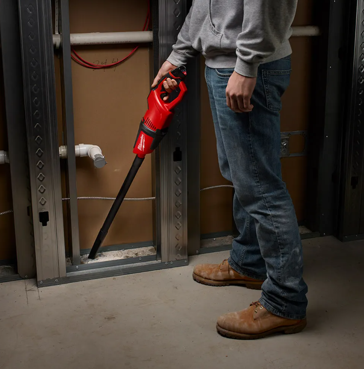 The 12V Cordless Compact Vacuum provides more power to clean anywhere. A high performance motor delivers maximum suction for a wide range of construction materials, such as wood chips and metal shavings.