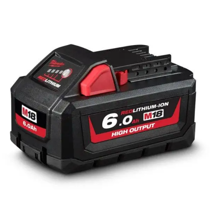 The M18 REDLITHIUM-ION™ HIGH OUTPUT 6.0Ah Battery Pack provides 50% more power and runs 50% cooler vs M18™ REDLITHIUM-ION™ 5.0Ah extended capacity battery packs. The optimised combination of size and increased power provides a great solution for the entire range of M18™ products. It delivers fade free power and runs substantially cooler through heavy applications, allowing tradesmen to push their cordless tools harder and longer than ever before.