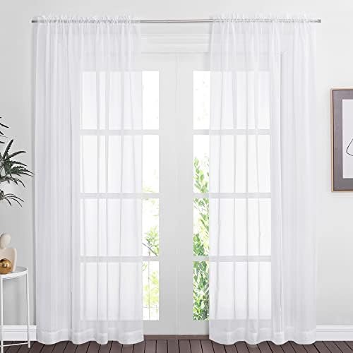 NICETOWN White Sheer Curtains for Bedroom – 84 Inches Long Rod Pocket Solid