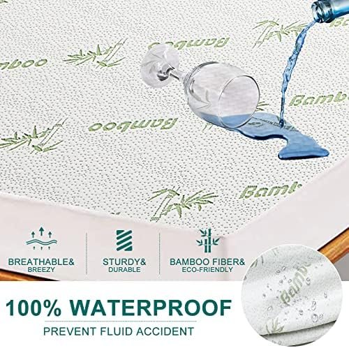 Sasttie Waterproof Mattress Protector Queen, Cooling Bamboo Mattress Cover