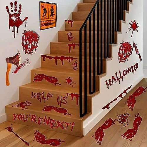 Perfect Bloody Scene Prop:The bloody handprint footprint clings, vivid color, create creepy entrance to your Halloween party or haunted house simply, perfect for Halloween and zombie party favors and walking dead party supplies.