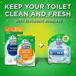 Get a handle on the messes of your toilet bowl with Scrubbing Bubbles Fresh Brush Toilet Cleaning System. Fresh Brush scrubs away stains and cleans your toilet and leaves it smelling fresh. Instead of keeping your dirty toilet bowl brush, with Fresh Brush, you just throw your dirty disposable pad away when you’re done. It’s the only toilet bowl cleaning system with disposable pads. After cleaning, use Scrubbing Bubbles Fresh Gel Toilet Cleaning Stamp to keep your toilet smelling fresh.