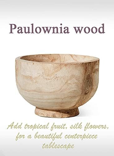 Serene Spaces Living 11″ Paulownia Wood Round Bowl, Handmade Wooden Decorative