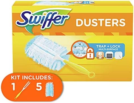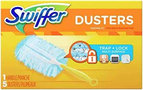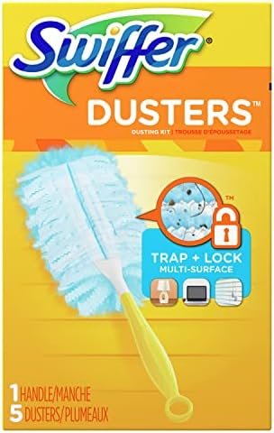 Swiffer 180 Dusters TRAP + LOCK dust & allergens*. Made with specially coated fibers that grab onto dust & don’t let go. They are uniquely designed to Trap + Lock dust from even the tight spaces in your home. *common inanimate allergens from cat and dog dander & dust mite matter