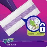 Swiffer WetJet Hardwood Floor Cleaner, Spray Mopping Pad Refills have a new ABSORB + LOCK STRIP that helps trap dirt & grime deep in the cleaning pad so it doesn’t get pushed around. When you’re done, just remove the pad and throw it, and all that dirt, away forever.