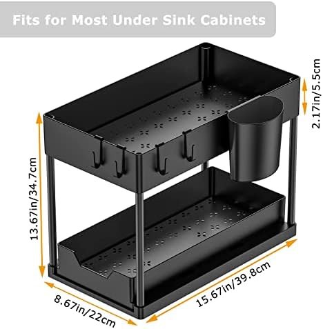 UNDER SINK SHELF DIMENSION – 15.67″Lx8.67″Wx13.67″H, fits for most under sink cabinets even a lot of pipes inside,very space saving