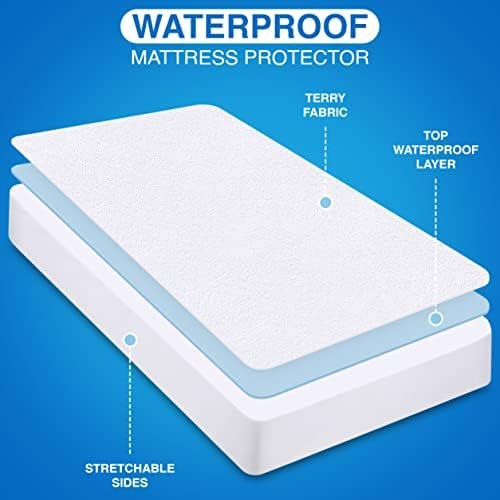 COTTON TERRY BLEND – A blended surface of cotton (70%) and polyester (30%) preserves the soft, cozy, noiseless and breathable feel of your mattress; waterproof top and high-quality seam construction stops water and urine from passing through.