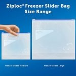Keep your food fresh with Ziploc brand Slider Bags. Each bag features a slider closure and an expandable bottom that opens into a flat base, helping the bag stay upright so it’s easy to fill. Plus, these bags feature our Smart Zip seal—it lets you hear the bag close so you can feel confident your food is protected. Use it to keep your refrigerator and freezer organized, conquer meal prep, keep leftovers fresher for longer and to make the most of your freezer meals. These bags can also handle bulky items like cables, tools, and toys.